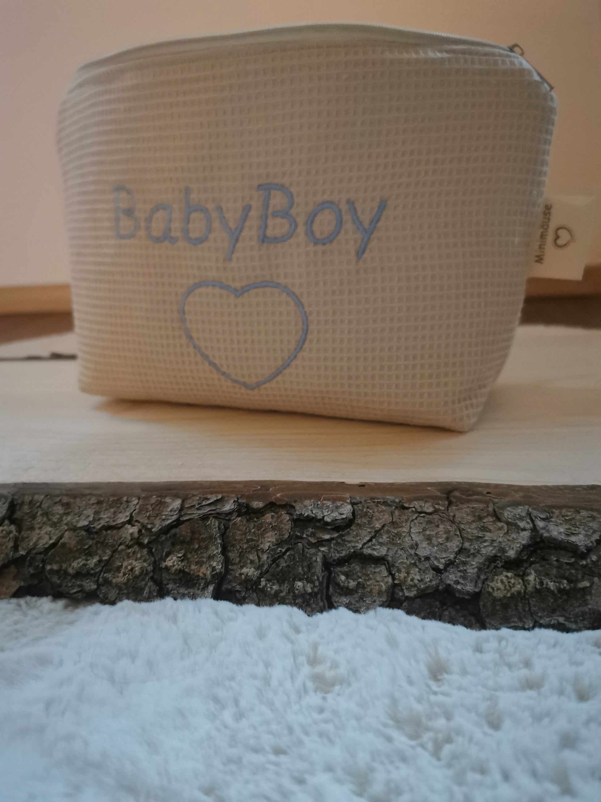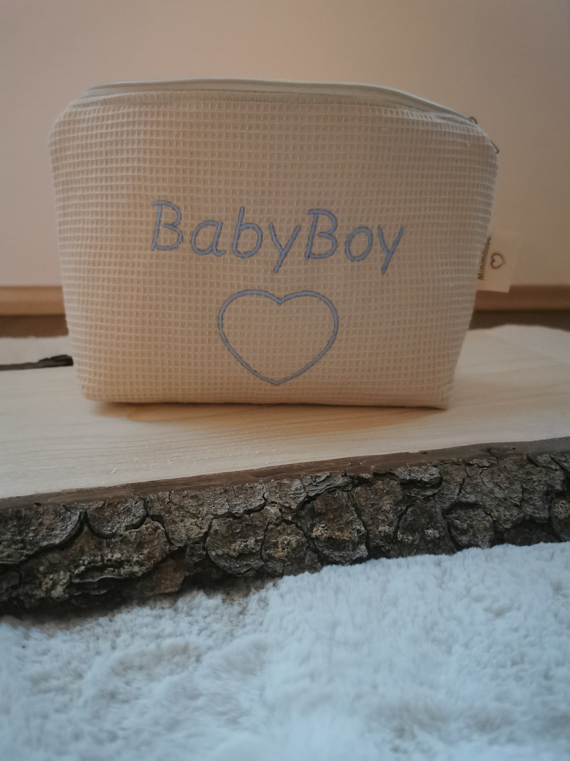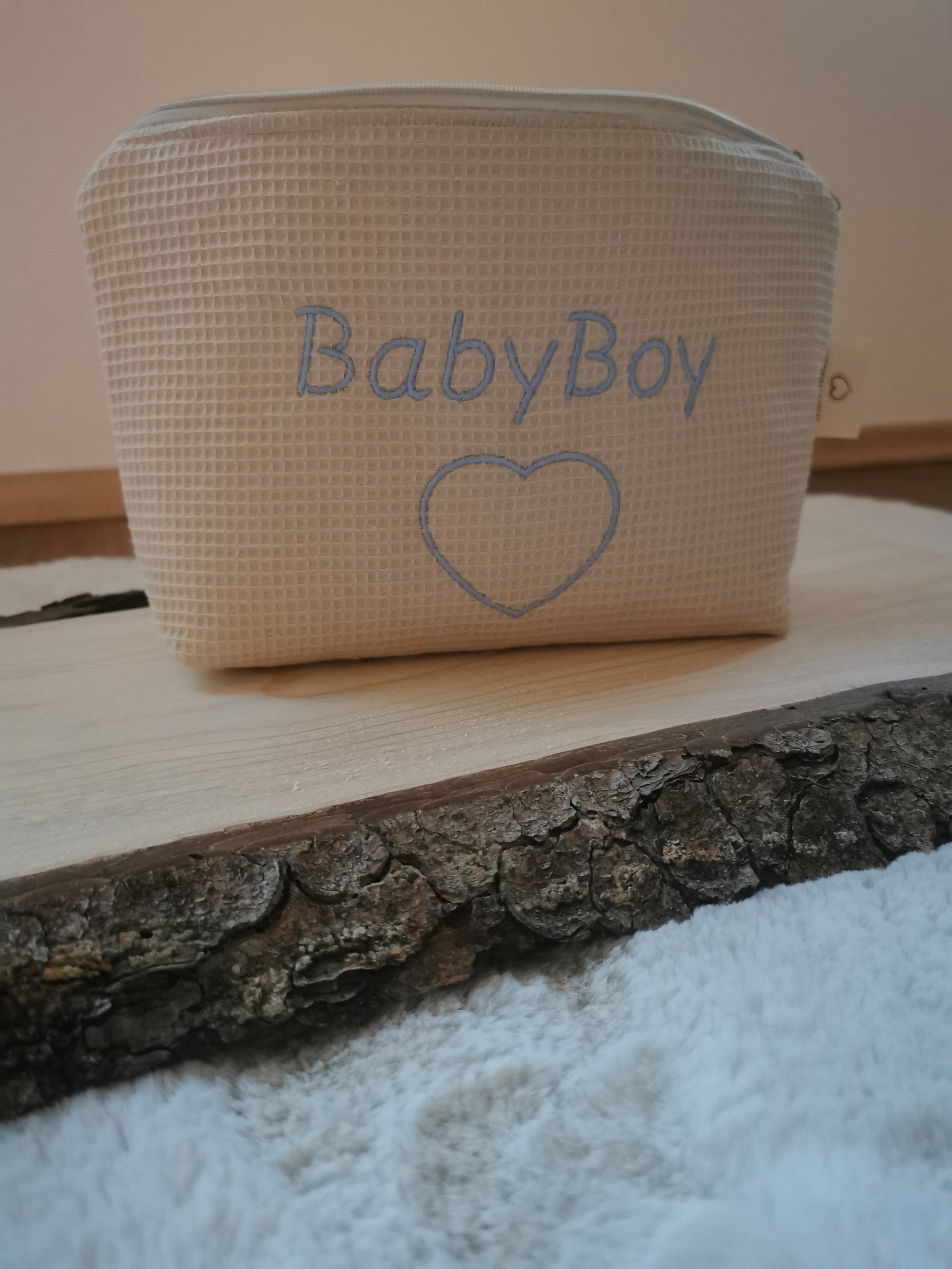 - Design: Mit einem Herz und der Aufschrift "BabyBoy"